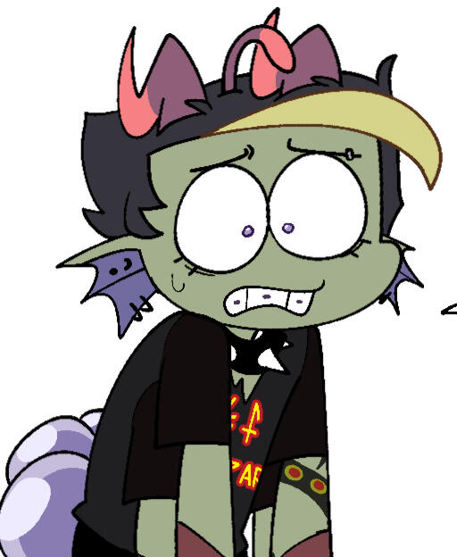 Side villain of s2. Noodle is originally a side character but becomes something much more after he makes a deal with Grem, basically selling his soul to him in order to get revenge on Tix for ignoring him and just being an asshole. Originally he's pretty skittish and a bit cowardly but still a good person, he gets more confident after meeting Grem. Eventually the power Grem gives him goes to his head and he becomes obsessed with dethroning Tix, but is ultimately convinced to give up Grem's influence by Tix’s daughter, who he babysat a lot in the past.